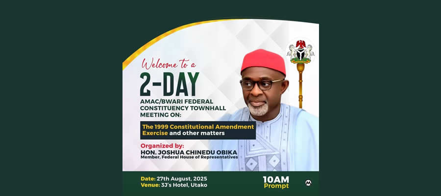 The Town Hall Meeting on the 1999 Constitutional Amendment Exercise, organized by the Member representing the AMAC/Bwari Federal Constituency, Hon. Joshua Chinedu Obika, MHR, concluded successfully with robust and positive deliberations. The event brought together a wide spectrum of stakeholders, including FCT Original Inhabitants, residents, community leaders, traditional rulers, and…