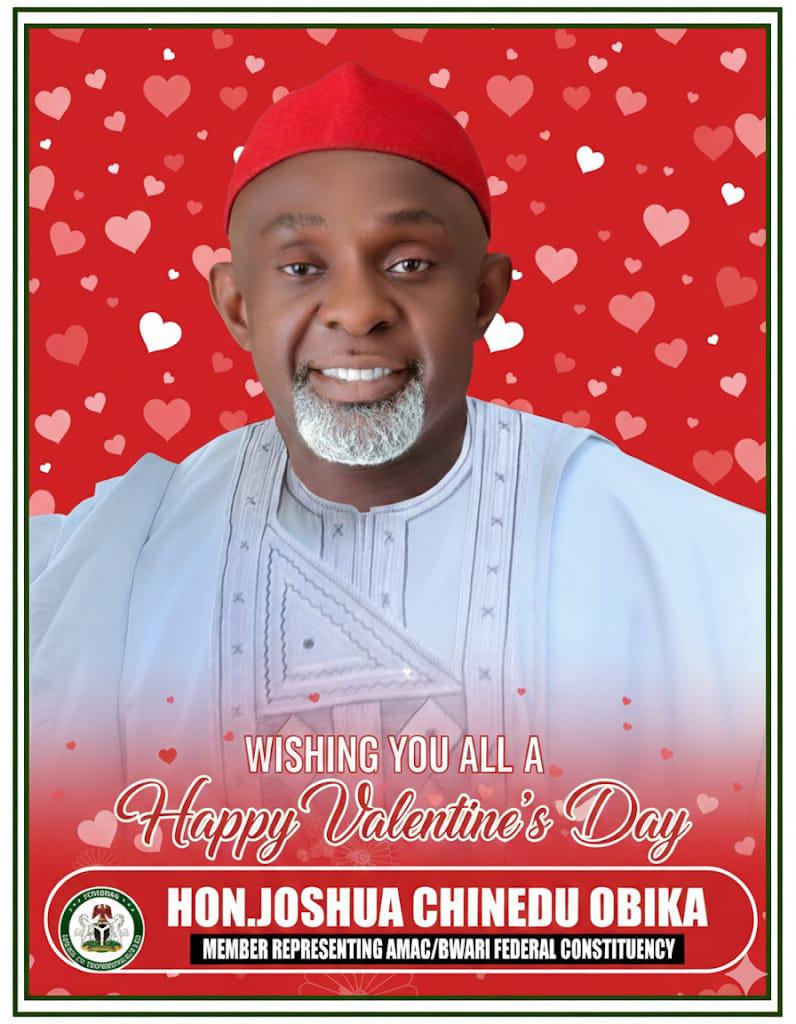 Hon. Joshua Chinedu Obika (APC) -MHR Wishes Everyone, A Happy Valentine’S Day Especially To The Hospitable And Wonderful People Of AMAC/Bwari Federal Constituency FCT.