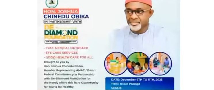 Hon. Joshua Chinedu Obika, Member of the House of Representatives for AMAC/Bwari Federal Constituency, in partnership with the De Diamond Foundation for the Needy, is pleased to announce a comprehensive free medical outreach program for all constituents.
